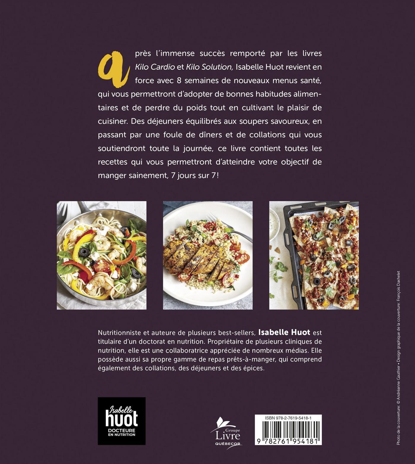 Après l'immense succès remporté par les livres Kilo Cardio et Kilo Solution, Isabelle Huot revient en force avec 8 semaines de nouveaux menus santé, qui vous permettront d'adopter de bonnes habitudes alimentaires et de perdre du poids tout en cultivant le plaisir de cuisiner.