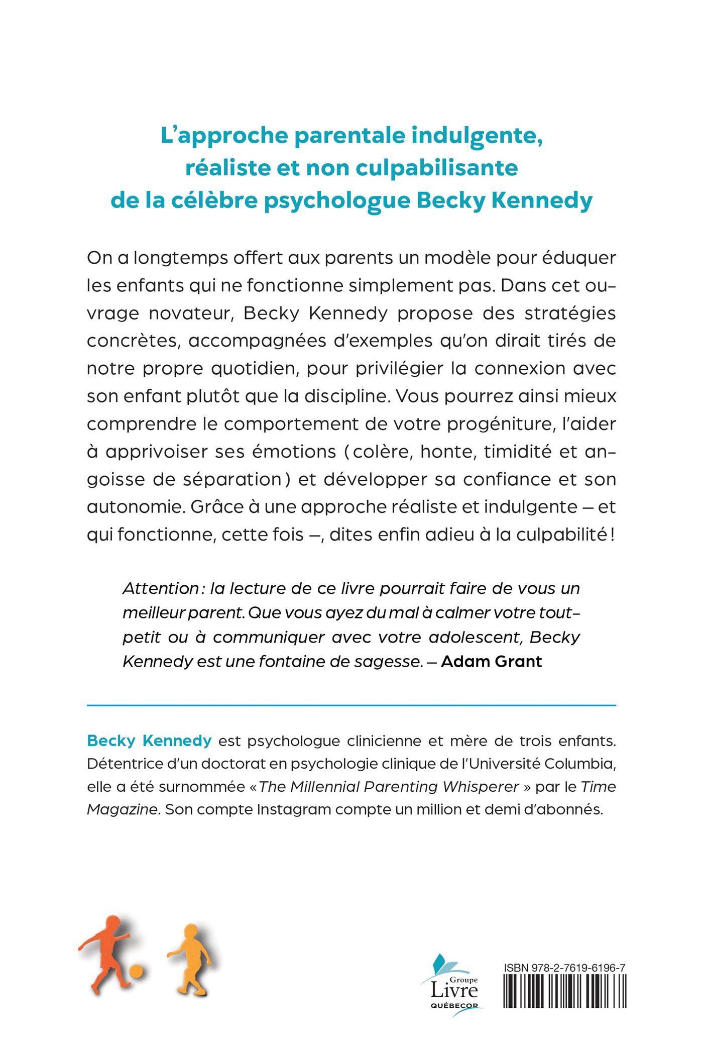 On a longtemps offert aux parents un modèle pour éduquer les enfants qui ne fonctionne simplement pas. Dans cet ouvrage novateur, Becky Kennedy propose des stratégies concrètes, accompagnées d'exemples qu'on dirait tirés de notre propre quotidien, pour privilégier la connexion avec son enfant plutôt que la discipline. Vous pourrez ainsi mieux comprendre le comportement de votre progéniture, l'aider à apprivoiser ses émotions (colère, honte, timidité et angoisse de séparation) et développer sa confiance et son autonomie. Grâce à une approche réaliste et indulgente – et qui fonctionne, cette fois –, dites enfin adieu à la culpabilité!