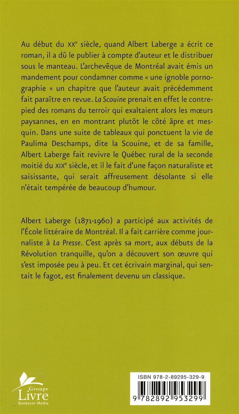 .Ce roman raconte la vie médiocre et misérable de la Scouine et de sa famille, à la campagne, au XIXe siècle. En une série de tableaux d'une écriture remarquable et puissante, il présente un portrait de la vie rurale, bien éloigné de l'image idéalisée que les bien-pensants de l'époque voulaient en donner : il évoque le travail de la terre, les scandales qui troublent le village, les moeurs électorales, il campe des personnages pittoresques comme le quêteux ou l'aventurier qui a vécu en Californie, etc., et toujours il montre une réalité âpre, morne et triste. Curieusement, ce roman qui prend le contre-pied de l'idéologie du terroir restitue mieux ce que devait être la vie des habitants durant "le long hiver de la survivance" (comme a dit Fernand Dumont).
