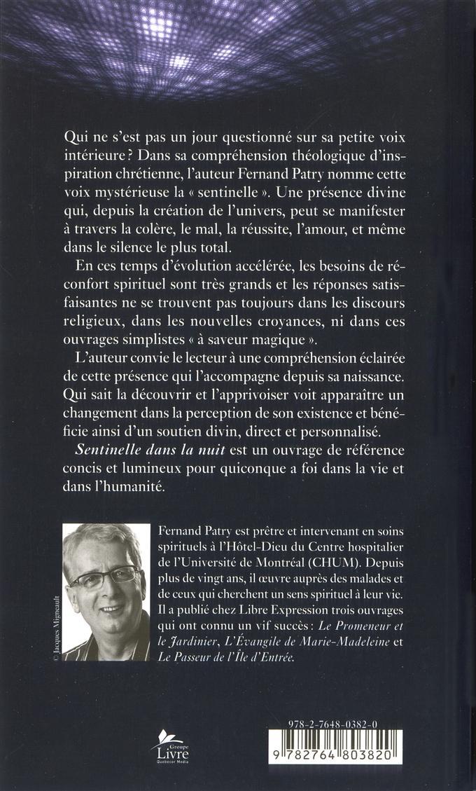 Autant l’origine de l’univers fascine, autant la présence divine dans l’univers demeure un mystère. L’homme aurait-il inventé les religions pour répondre à son désir fondamental d’être immortel et de nommer un tant soit peu ce mystère ? Dans cet ouvrage spirituel, l’auteur appelle la présence divine en l’homme « la sentinelle dans la nuit ». Comment cette présence se manifeste-t-elle ? Comment peut-elle inspirer, guider et aider l’homme à traverser les passages difficiles ? Et qu’en est-il du libre arbitre de l’homme ? À travers des situations quotidiennes facilement identifiables, le lecteur prendra conscience que cette sentinelle, vivante et spirituelle, s’est cristallisée dès l’incarnation dans sa cellule de vie et qu’elle l’accompagnera tout au long de son existence dans le respect absolu et la singularité de ses expériences de croissance.L’ouvrage précise que l’esprit du divin s’exprime dans plusieurs religions aussi valables les unes que les autres. Par-delà les différentes cultures avec leurs lieux de culte, leurs rites et leurs traditions spécifiques pour nommer Dieu, l’auteur invite le lecteur à découvrir son propre chemin intérieur vers l’accessibilité à sa divinité. Il démontre que cette essence divine qui habite chacun de nous a été créée à l’image et à la ressemblance du divin auquel l’humanité tout entière doit tendre et aboutir.