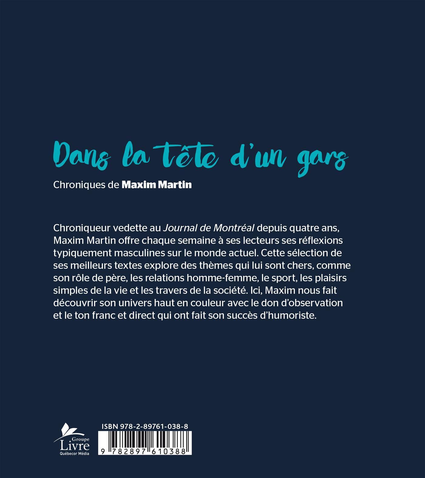 Chroniqueur vedette au Journal de Montréal depuis quatre ans, Maxim Martin offre chaque semaine à ses lecteurs ses réflexions typiquement masculines sur le monde actuel. cette sélection de ses meilleurs textes explore des thèmes qui lui sont chers, comme son rôle de père, les relations homme-femme, le sport, les plaisirs simples de la vie et les travers de la société. Ici, Maxim nous fait découvrir son univers haut en couleur avec le don d'observation et le ton franc et direct qui ont fait son succès d'humoriste.