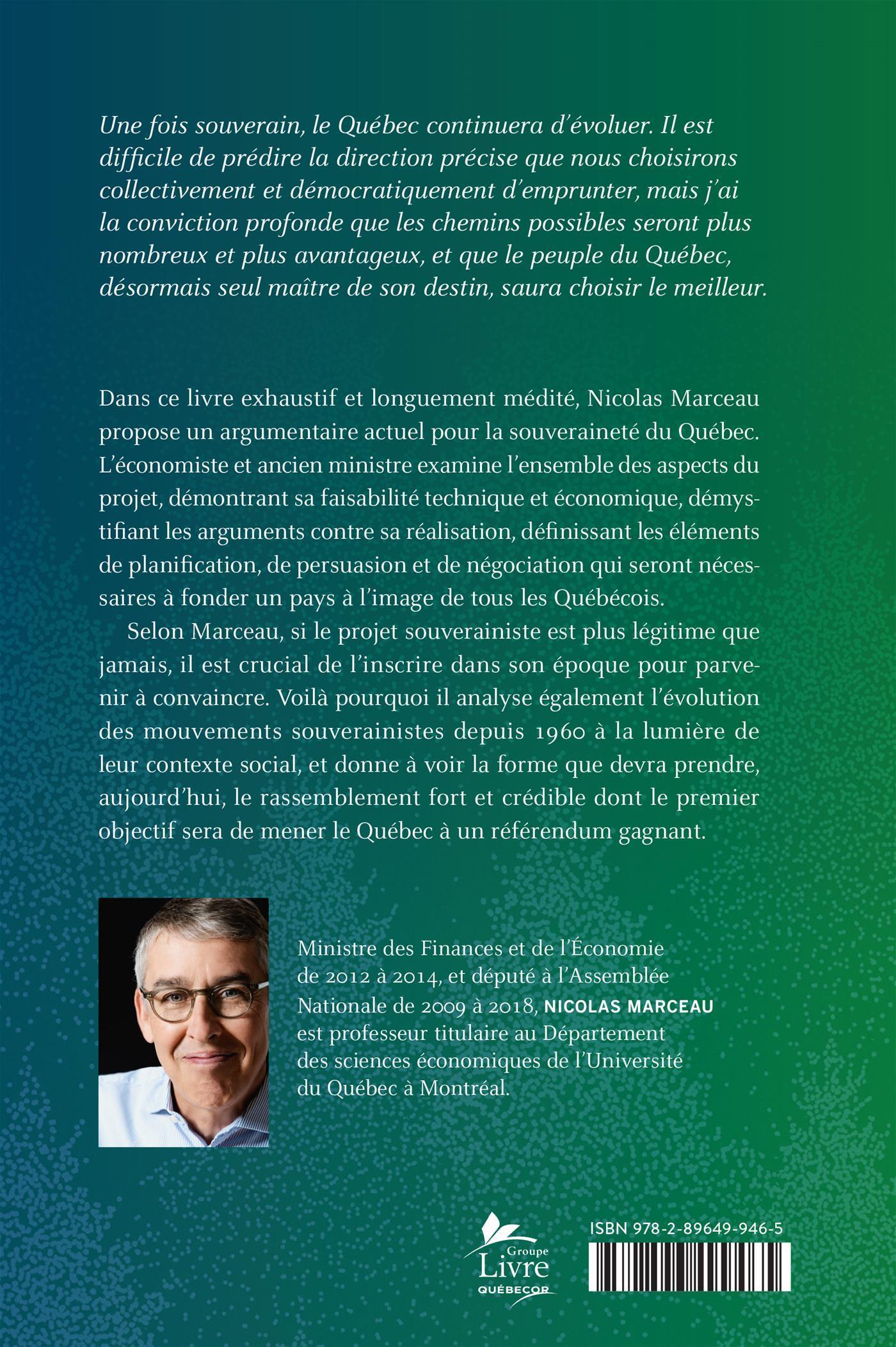 Dans ce livre exhaustif et longuement médité, Nicolas Marceau propose un argumentaire actuel pour la souveraineté du Québec. L'économiste et ancien ministre examine l'ensemble des aspects du projet, démontrant sa faisabilité technique et économique, démystifiant les arguments contre sa réalisation, définissant les éléments de planification, de persuasion et de négociation qui seront nécessaires à fonder un pays à l'image de tous les Québécois.