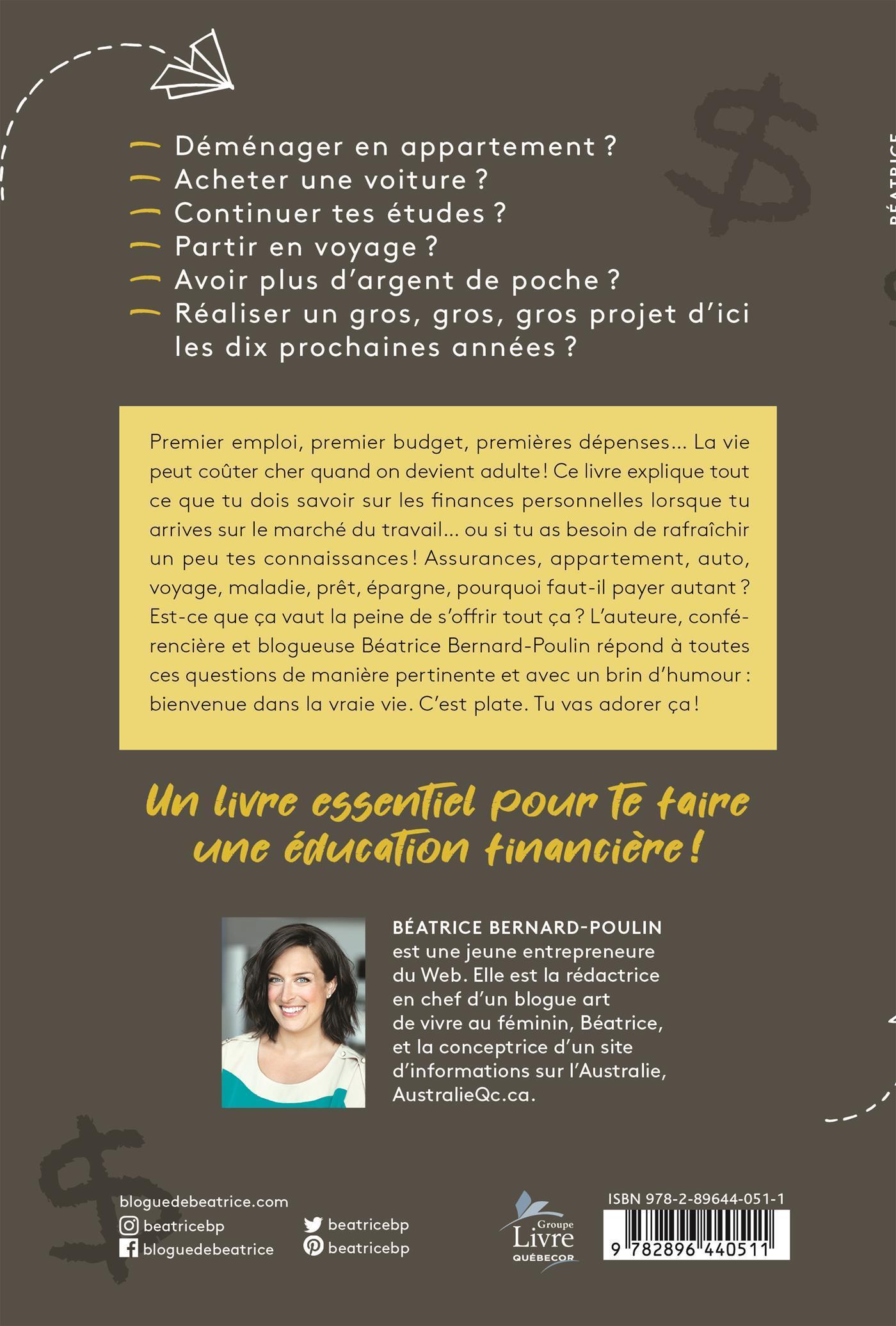 Premier emploi, premier budget, premières dépenses… La vie peut coûter cher quand on devient adulte ! Ce livre explique tout ce que tu dois savoir sur les finances personnelles lorsque tu arrives sur le marché du travail… ou si tu as besoin de rafraîchir un peu tes connaissances ! Assurances, appartement, auto, voyage, maladie, prêt, épargne, pourquoi faut-il payer autant ? Est-ce que ça vaut la peine de s'offrir tout ça ? L'auteure, conférencière et blogueuse Béatrice Bernard-Poulin répond à toutes ces questions de manière pertinente et avec un brin d'humour : bienvenue dans la vraie vie. C'est plate. Tu vas adorer ça !