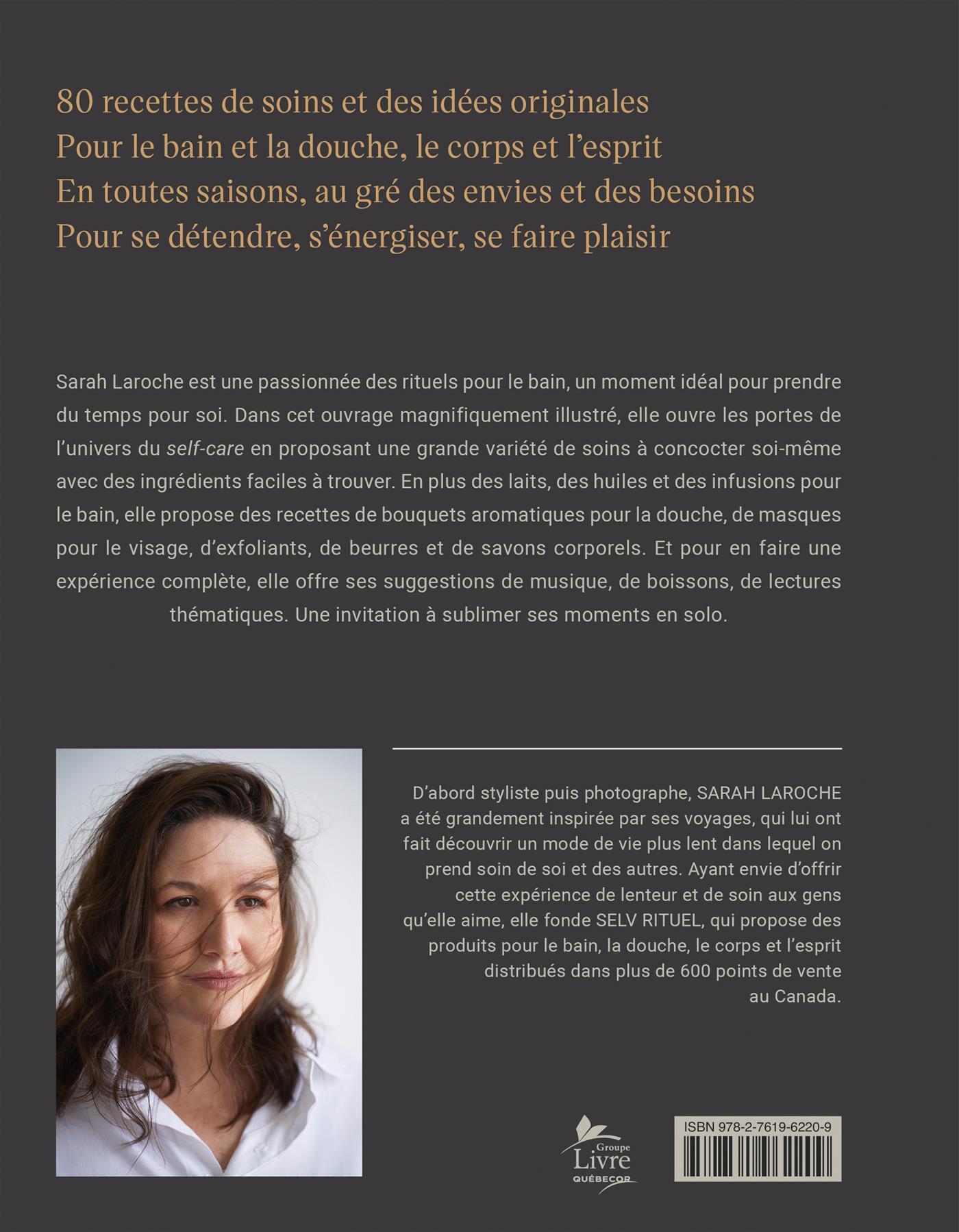 Sarah Laroche est une passionnée des rituels pour le bain, un moment idéal pour prendre du temps pour soi. Dans cet ouvrage magnifiquement illustré, elle ouvre les portes de l'univers du self-care en proposant une grande variété de soins à concocter soi-même avec des ingrédients faciles à trouver. En plus des laits, des huiles et des infusions pour le bain, elle propose des recettes de bouquets aromatiques pour la douche, de masques pour le visage, d'exfoliants, de beurres et de savons corporels. Et pour en faire une expérience complète, elle offre ses suggestions de musique, de boissons, de lectures thématiques. Une invitation à sublimer ses moments en solo.