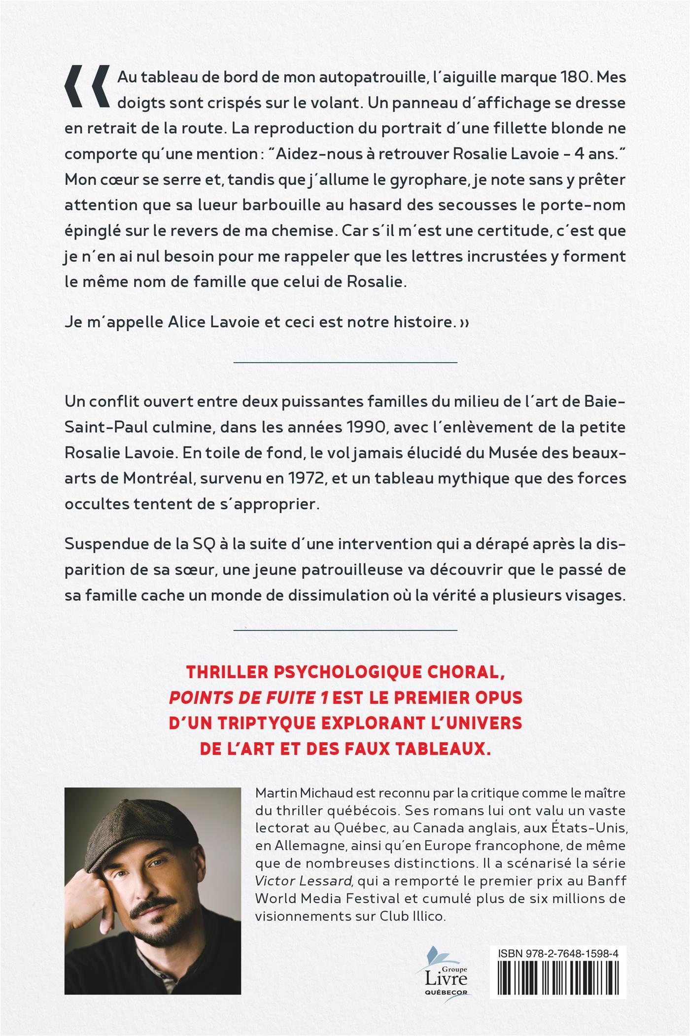 Un conflit ouvert entre deux puissantes familles du milieu de l'art de Baie-Saint-Paul culmine, dans les années 1990, avec l'enlèvement de la petite Rosalie Lavoie. En toile de fond, le vol jamais élucidé du Musée des beaux-arts de Montréal, survenu en 1972, et un tableau mythique que des forces occultes tentent de s'approprier.