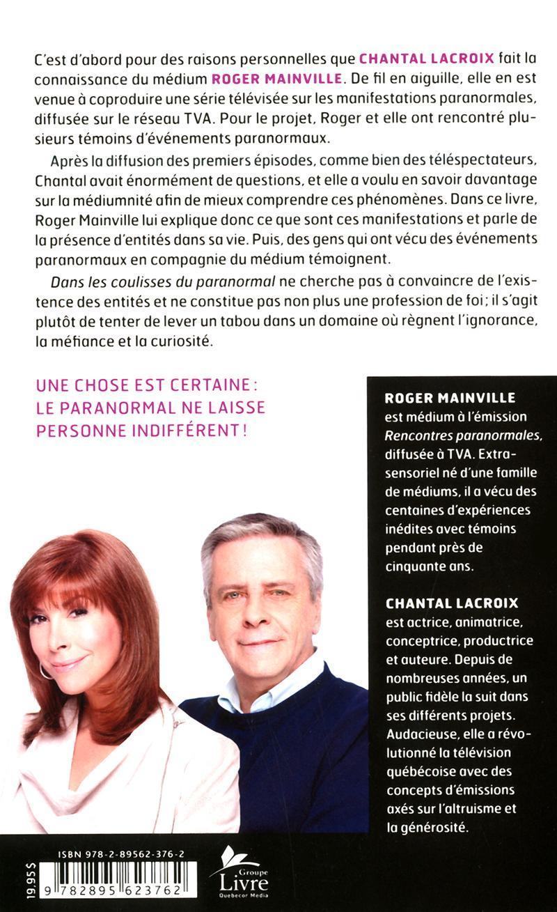 Avec Dans les coulisses du paranormal, Roger Mainville tente de confronter certains clichés concernant le paranormal et propose d'avoir un esprit plus ouvert sur la médiumnité en l'expliquant à la lumière de ses propres expériences. Il enjoint aux gens de ne pas rejeter les phénomènes paranormaux du revers de la main en prétextant qu'ils sont uniquement le fruit de l'imagination, d'hallucinations ou de machinations. Cependant, il ne s'agit pas d'une profession de foi ou d'une tentative de prouver quoi que ce soit, au contraire : selon l'auteur, il y a des choses qui ne peuvent être comprises que lorsqu'elles sont vécues.
