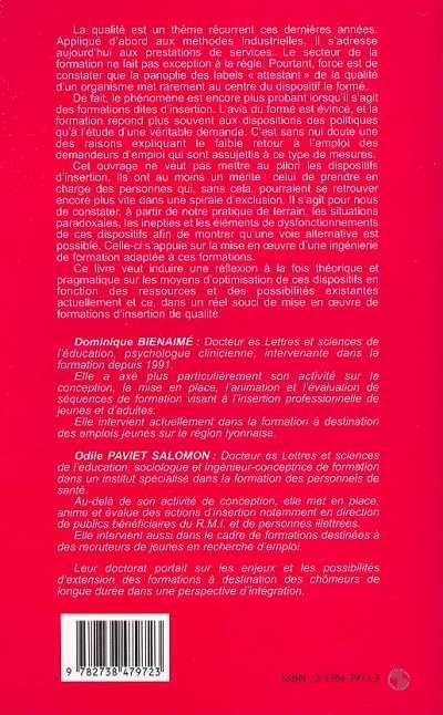 Les formations dites d'insertion ne se préoccupent guère de l'avis du formé quant à la qualité de celle-ci, la formation répond le plus souvent aux dispositions des politiques qu'à l'étude d'une véritable demande.