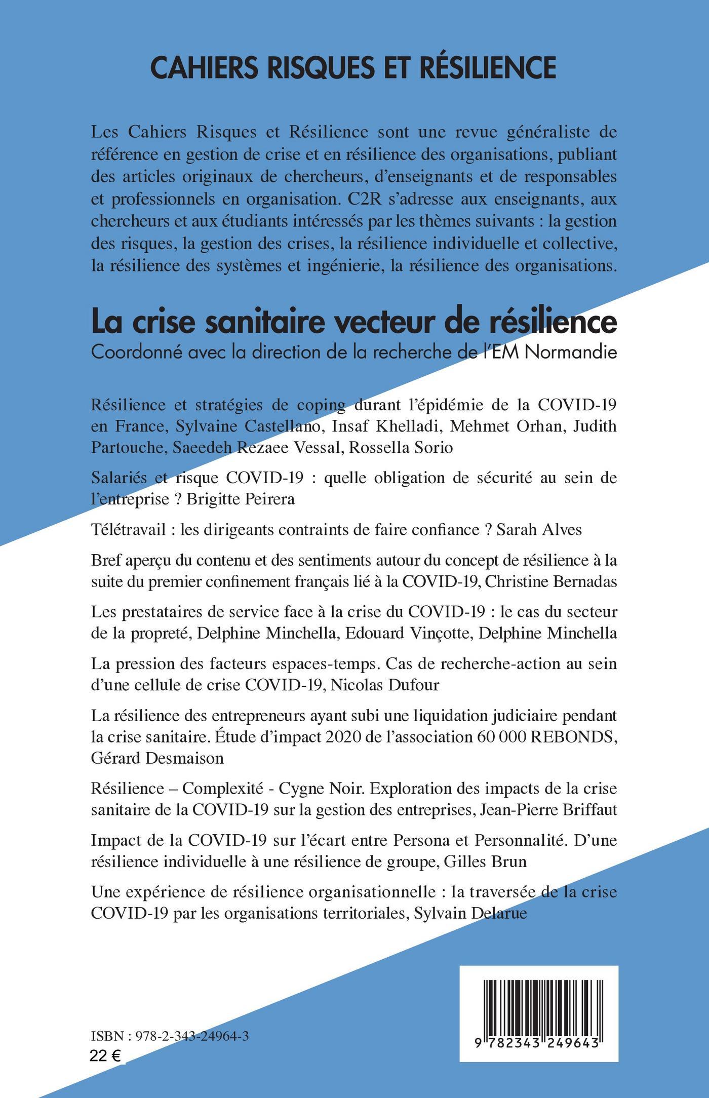 Les Cahiers Risques et Résilience sont une revue généraliste de référence en gestion de crise et en résilience des organisations, publiant des articles originaux de chercheurs, d’enseignants et de responsables et professionnels en organisation. C2R s’adresse aux enseignants, aux chercheurs et aux étudiants intéressés par les thèmes suivants : la gestion des risques, la gestion des crises, la résilience individuelle et collective, la résilience des systèmes et ingénierie, la résilience des organisations. Coordonné avec la direction de la recherche de l’EM Normandie.
