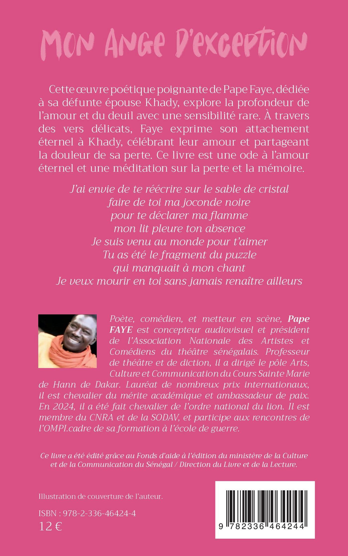 Cette œuvre poétique poignante de Pape Faye, dédiée à sa défunte épouse Khady, explore la profondeur de l'amour et du deuil avec une sensibilité rare. À travers des vers délicats, Faye exprime son attachement éternel à Khady, célébrant leur amour et partageant la douleur de sa perte. Ce livre est une ode à l'amour éternel et une méditation sur la perte et la mémoire.
