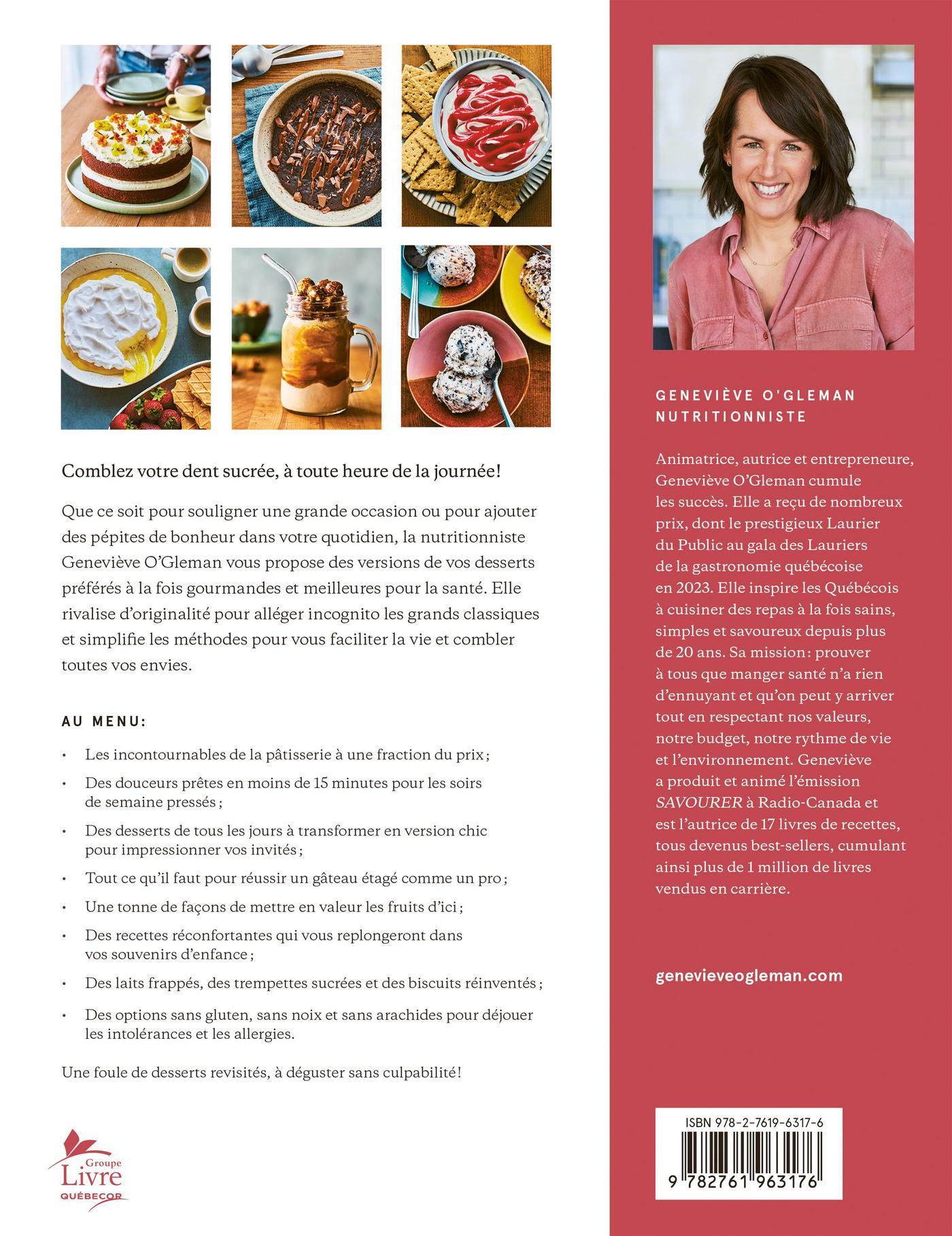 Que ce soit pour souligner une grande occasion ou pour ajouter des pépites de bonheur dans votre quotidien, la nutritionniste Geneviève O'Gleman vous propose des versions de vos desserts préférés à la fois gourmandes et meilleures pour la santé. Elle rivalise d'originalité pour alléger incognito les grands classiques et simplifie les méthodes pour vous faciliter la vie et combler toutes vos envies.
