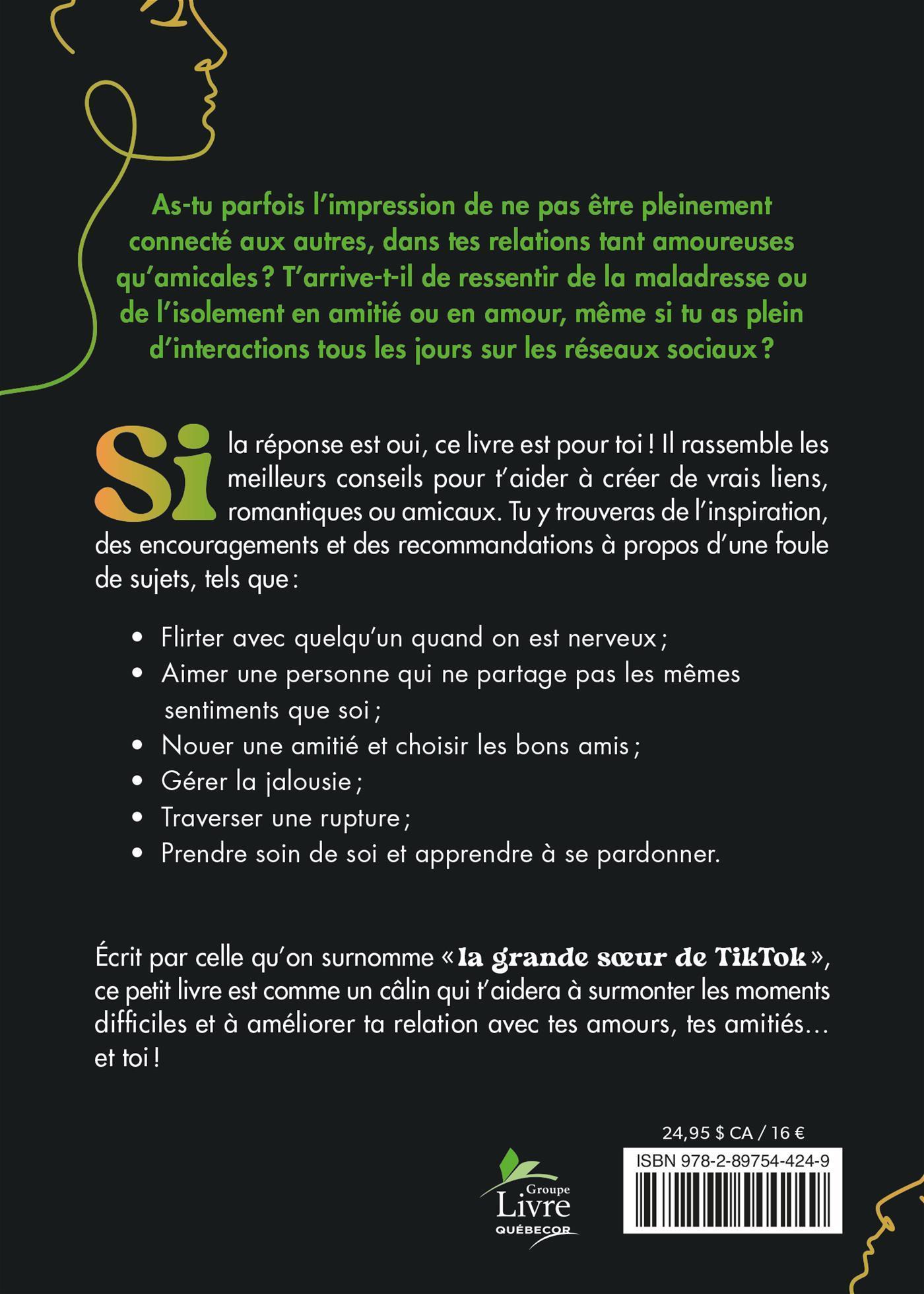 Écrit par celle qu'on surnomme « la grande soeur de TikTok », ce petit livre est comme un câlin qui t'aidera à surmonter les moments difficiles et à améliorer ta relation avec tes amours, tes amitiés… et toi !