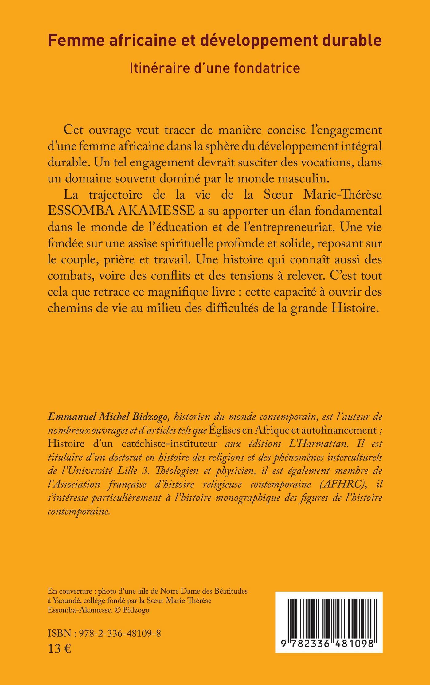 La trajectoire de la vie de la Sœur Marie-Thérèse ESSOMBA AKAMESSE a su apporter un élan fondamental dans le monde de l’éducation et de l’entrepreneuriat. Une vie fondée sur une assise spirituelle profonde et solide, reposant sur le couple, prière et travail. Une histoire qui connaît aussi des combats, voire des conflits et des tensions à relever. C’est tout cela que retrace ce magnifique livre : cette capacité à ouvrir des chemins de vie au milieu des difficultés de la grande Histoire.