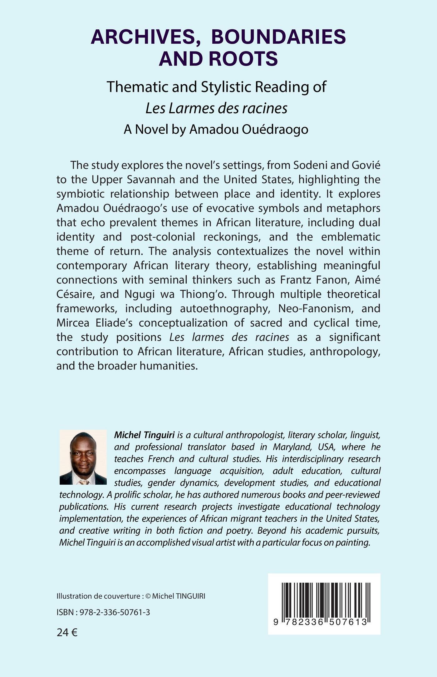 The study explores the novel’s settings, from Sodeni and Govié to the Upper Savannah and the United States, highlighting the symbiotic relationship between place and identity. It explores Amadou Ouédraogo’s use of evocative symbols and metaphors that echo prevalent themes in African literature, including dual identity and post-colonial reckonings, and the emblematic theme of return. The analysis contextualizes the novel within contemporary African literary theory, establishing meaningful connections with seminal thinkers such as Frantz Fanon, Aimé Césaire, and Ngugi wa Thiong’o. Through multiple theoretical frameworks, including autoethnography, Neo-Fanonism, and Mircea Eliade’s conceptualization of sacred and cyclical time, the study positions Les larmes des racines as a significant contribution to African literature, African studies, anthropology, and the broader humanities.