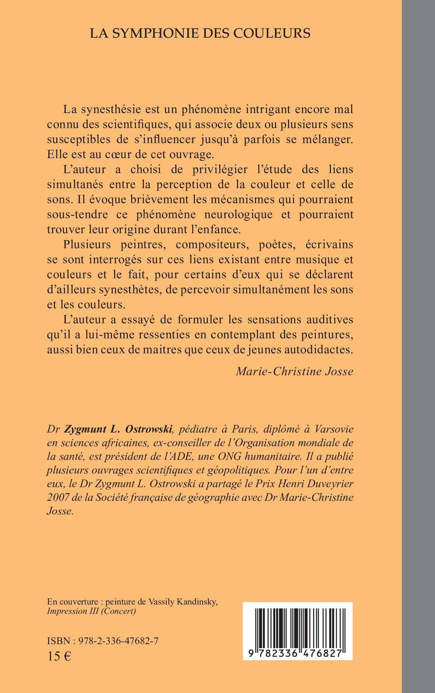 L’auteur a choisi de privilégier l’étude des liens simultanés entre la perception de la couleur et celle de sons. Il évoque brièvement les mécanismes qui pourraient sous-tendre ce phénomène neurologique et pourraient trouver leur origine durant l’enfance.