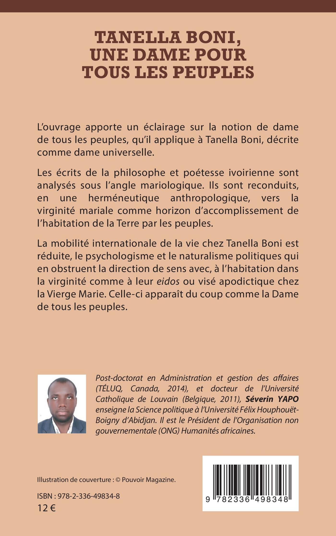 La mobilité internationale de la vie chez Tanella Boni est réduite, le psychologisme et le naturalisme politiques qui en obstruent la direction de sens avec, à l’habitation dans la virginité comme à leur eidos ou visé apodictique chez la Vierge Marie. Celle-ci apparaît du coup comme la Dame de tous les peuples.
