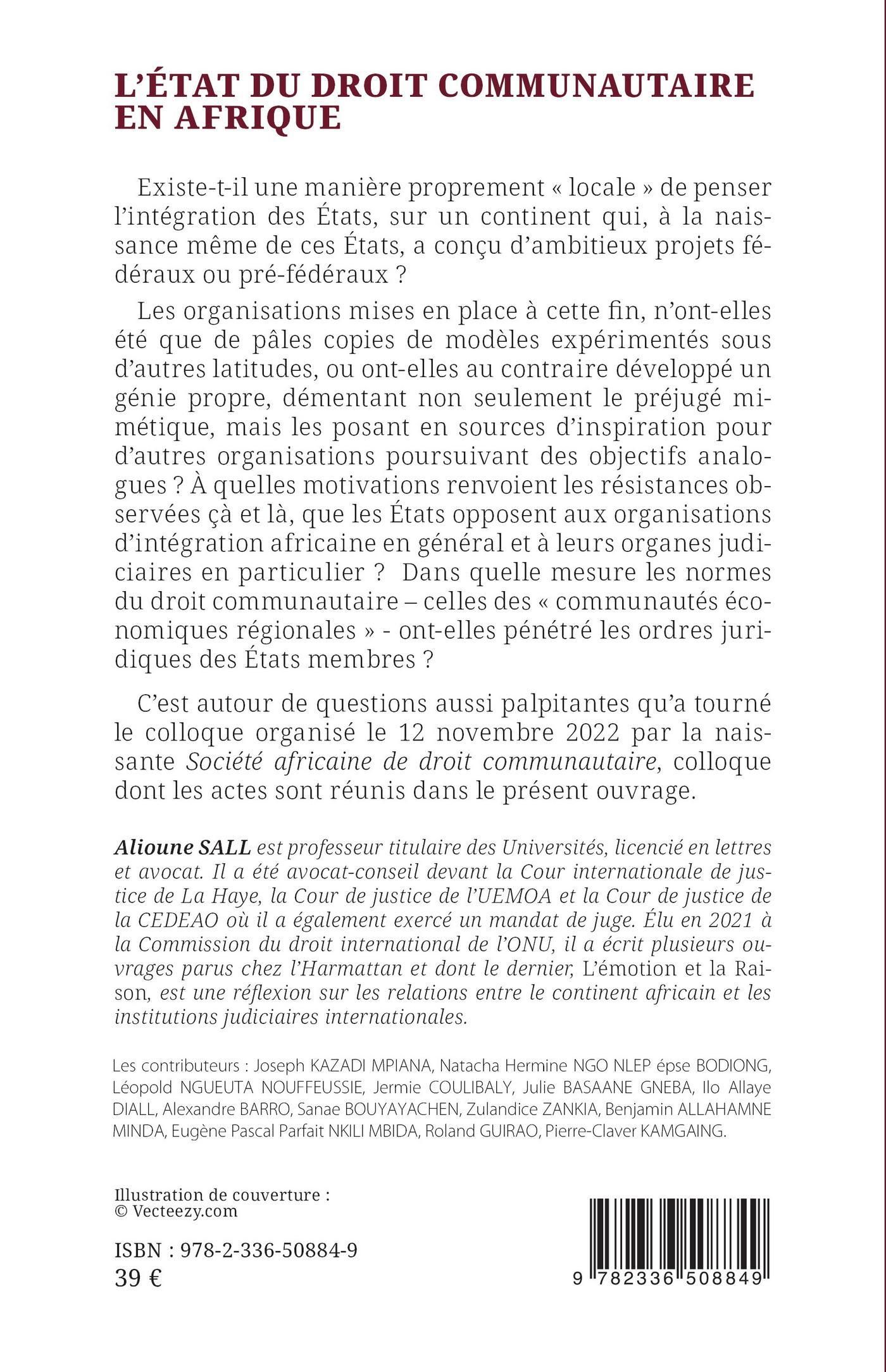 C’est autour de questions aussi palpitantes qu’a tourné le colloque organisé le 12 novembre 2022 par la naissante Société africaine de droit communautaire, colloque dont les actes sont réunis dans le présent ouvrage.
