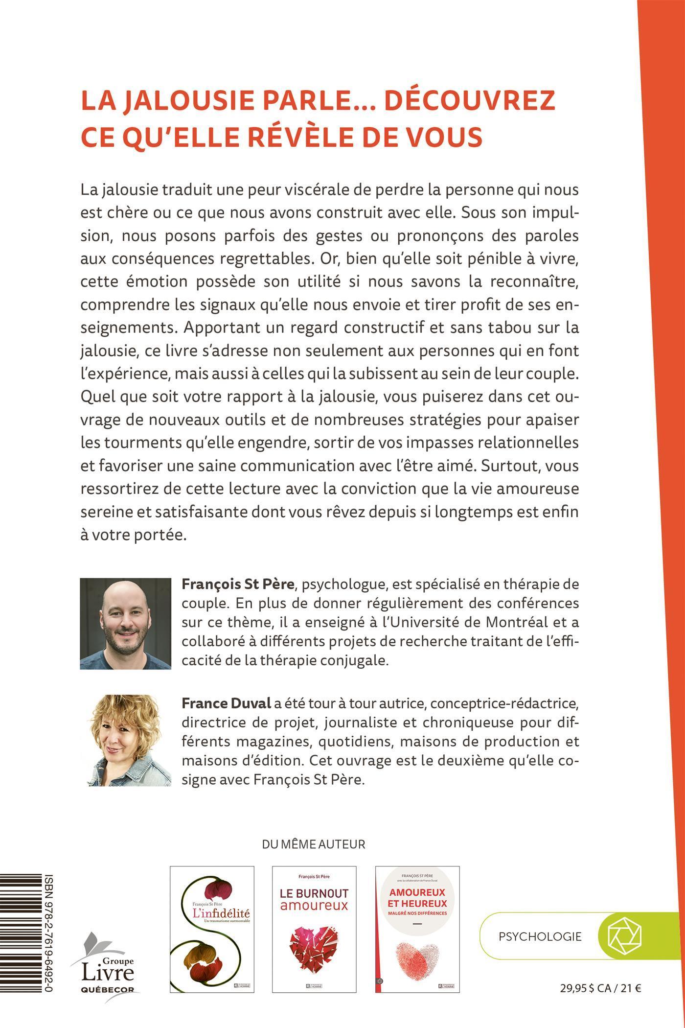 Or, bien qu'elle soit pénible à vivre, cette émotion possède son utilité si nous savons la reconnaître, comprendre les signaux qu'elle nous envoie et tirer profit de ses enseignements. Apportant un regard constructif et sans tabou sur la jalousie, ce livre s'adresse non seulement aux personnes qui en font l'expérience, mais aussi à celles qui la subissent au sein de leur couple.