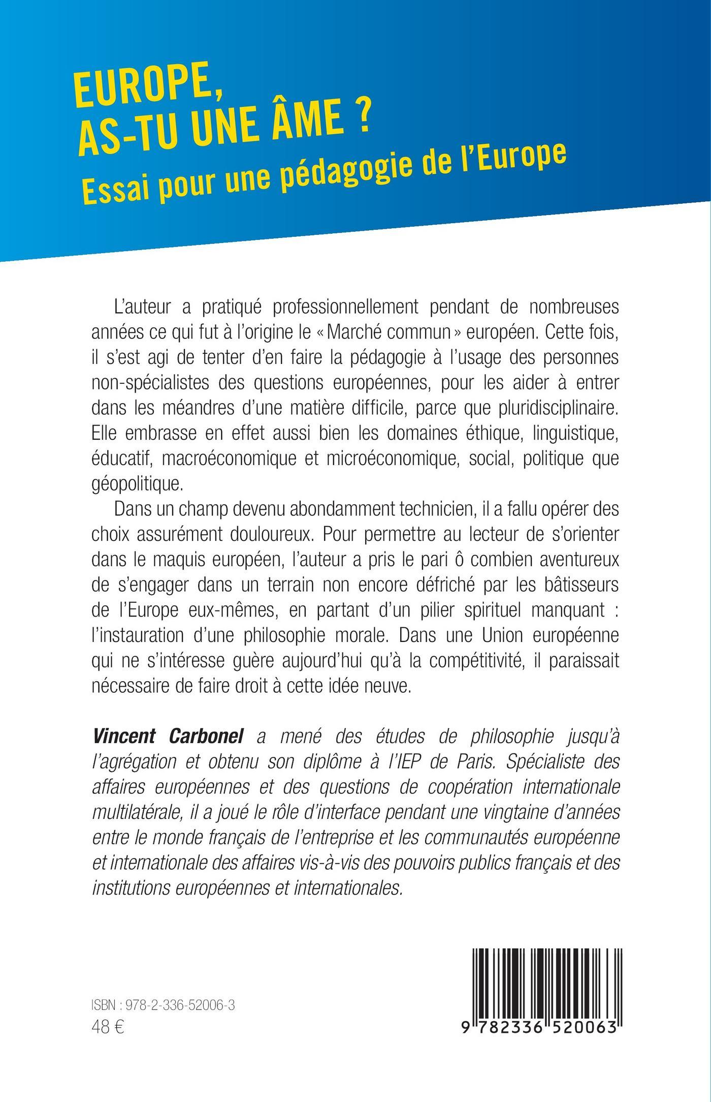 Dans un champ devenu abondamment technicien, il a fallu opérer des choix assurément douloureux. Pour permettre au lecteur de s’orienter dans le maquis européen, l’auteur a pris le pari ô combien aventureux de s’engager dans un terrain non encore défriché par les bâtisseurs de l’Europe eux-mêmes, en partant d’un pilier spirituel manquant : l’instauration d’une philosophie morale. Dans une Union européenne qui ne s’intéresse guère aujourd’hui qu’à la compétitivité, il paraissait nécessaire de faire droit à cette idée neuve.