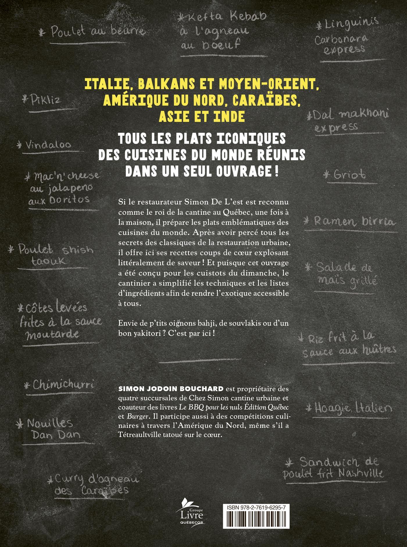 Si le restaurateur Simon De L'est est reconnu comme le roi de la cantine au Québec, une fois à la maison, il prépare les plats emblématiques des cuisines du monde. Après avoir percé tous les secrets des classiques de la restauration urbaine, il offre ici ses recettes coups de cœur explosant littéralement de saveur!