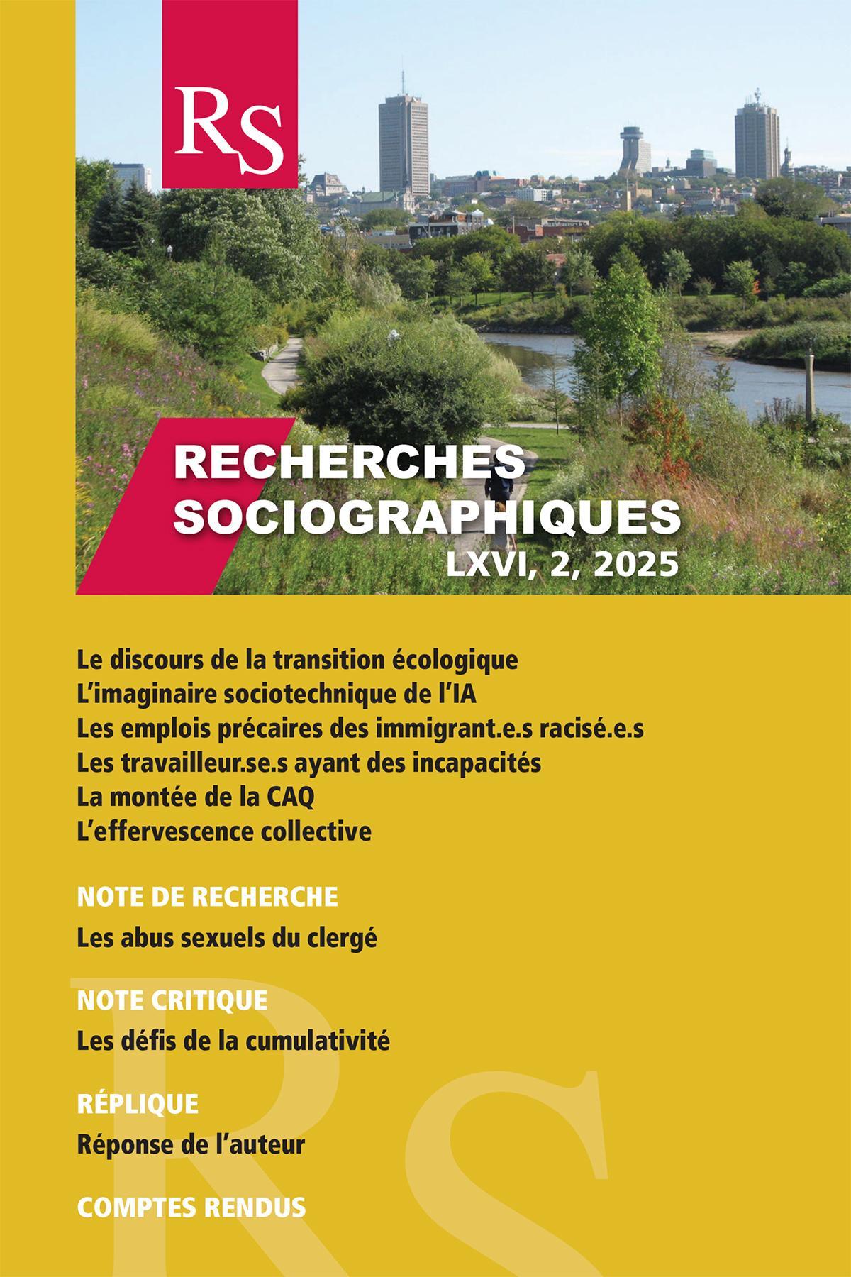 Editeur : Département de sociologie, Faculté des sciences sociales, Université Laval - Recherches sociographiques