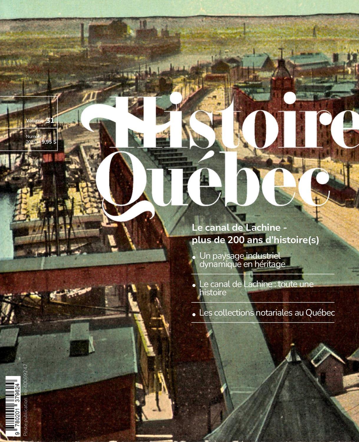 Histoire Québec souligne dans ce numéro le bicentenaire de l’ouverture du canal de Lachine. Sous la direction de l’historien Alain Gelly, la thématique présente son texte ainsi que ceux de Matthieu Paradis, conseiller à la gestion des ressources culturelles et de l’archéologue André Miller. S’ajoutent au dossier les contributions d’André Gousse (Société d’histoire de la seigneurie de Chambly), de Mona Andrée Rainville (Société d’histoire de Lachine) et de Pierre Riley et Nathacha Alexandroff (Société d'histoire de Pointe-Saint-Charles). Ces articles explorent l’histoire du canal, les communautés qui l’entourent et son impact. Deux textes hors-thématique complètent le numéro : Marcel Fournier s’intéresse aux collections notariales de la province, tandis qu’Olivier Auger retrace l’histoire de la police à Trois-Rivières. Enfin, ne manquez pas nos chroniques régulières : ethnologique par Catherine Charron du Conseil des métiers d’art, mot d’ici du linguiste Gabriel Martin et histoire de lire.